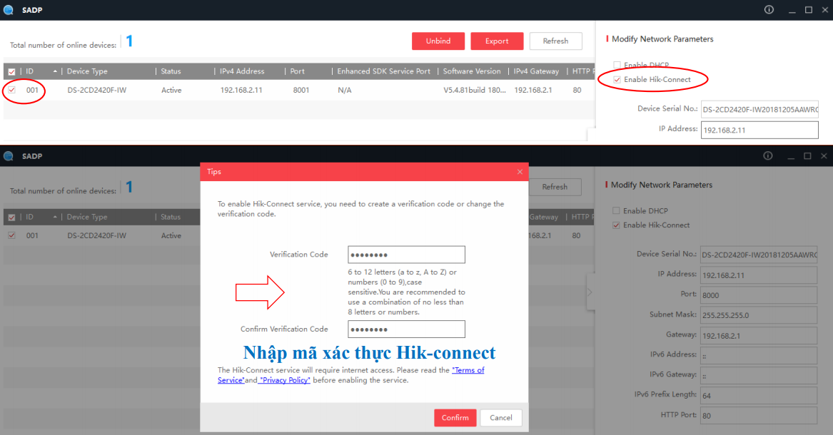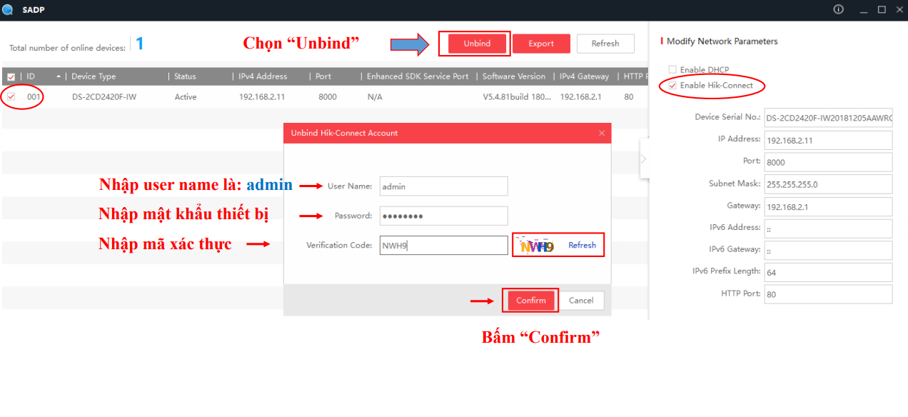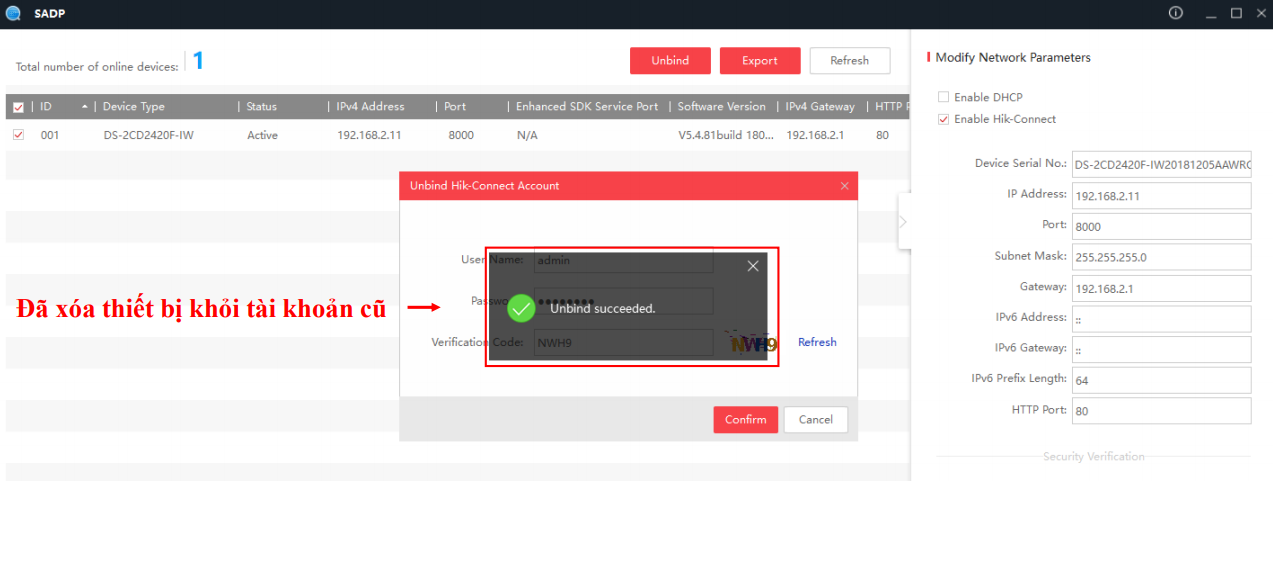 HƯỚNG DẪN XÓA THIẾT BỊ RA KHỎI TÀI KHOẢN HIK-CONNECT BẰNG SADP TOOL