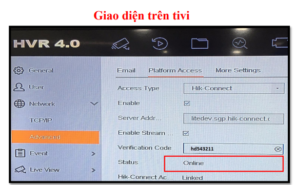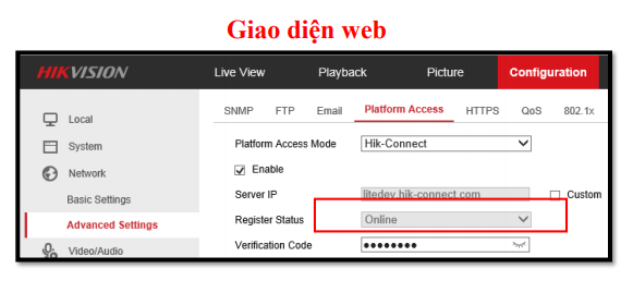 Thực hiện theo các tùy chọn sau: Configuration -> Advanced Settings -> Kiểm tra dòng trạng thái Status "Online".